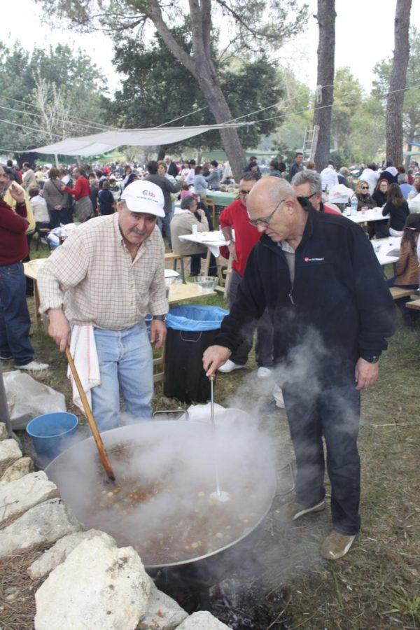Las comidas suelen ser abundantes donde no faltan las chuletas de cordero, la paella, el conejo a la brasa y el vino. Cada familia aportará un plato que luego es consumido por todo el grupo.